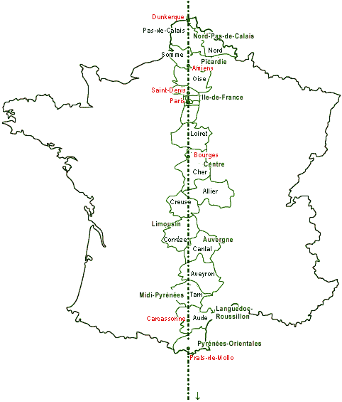 Les Français cette année ont fait fort. On sait combien ils sont attachés à leur fête nationale mais cette année ils ont redoublé d'enthousiasme pour une fête vraiment pas comme les autres. Le bal des pompiers que tout le monde connaît réunit dans les quartiers des villes et des villages les fêtards et les amateurs de bal musette le 13 juillet au soir. Et c'est toute la nuit que l'on va danser au rythme des accordéons. Le lendemain les airs seront moins frivoles pour les défilés militaires qui attirent généralement beaucoup de monde sur les principales allées citadines et villageoises. L'an 2000 a apporté un regain de ferveur que le mauvais temps, espérons-le, ne réussira pas à entâcher. La grande nouveauté c'est le fameux pique-nique party: un évènement long de 960 km qui reprend la Méridienne Verte. De Dunkerque à Barcelone ce sont, en chiffres, 337 communes, 8 régions et 20 départements qui vont participer à cette gigantesque opération organisée par la mission 2000. Une nappe de plus de 650 km est prévue, elle rentrera sûrement dans le prochain record du guiness ! Tout le monde est invité à participer au méga pique-nique mais à condition d'apporter son panier repas. Des animations en tous genres, surtout sportives, sont également prévues. Mais qu'est-ce que la méridienne verte ? Le Méridien de Paris est la ligne imaginaire qui a permis d'établir au XVIIIe siècle le calcul des heures locales et l'unité métrique de mesure. Malgré l'importance de cette ligne imaginaire, elle a été très vite supplanté par celle de Greenwich.